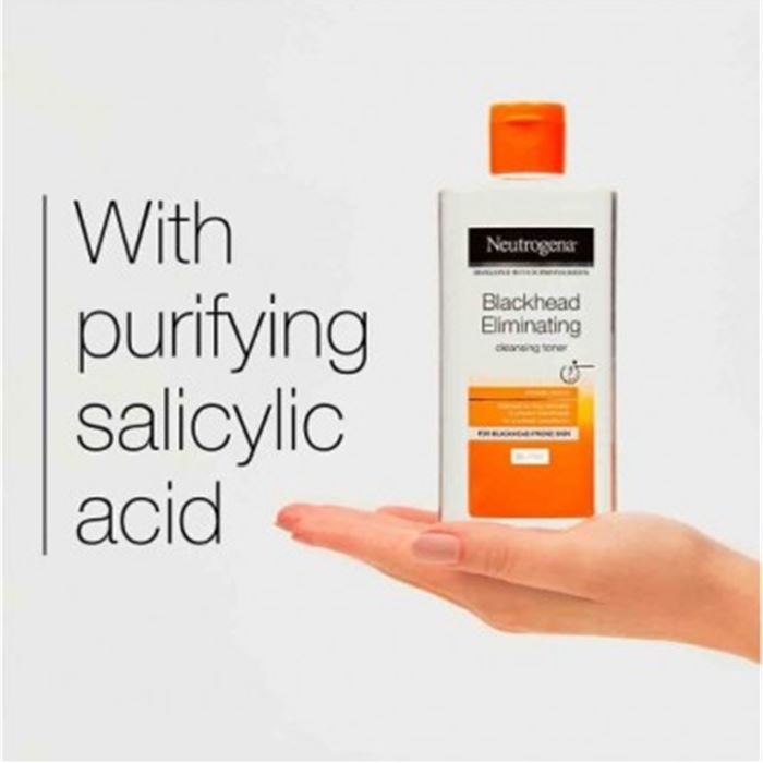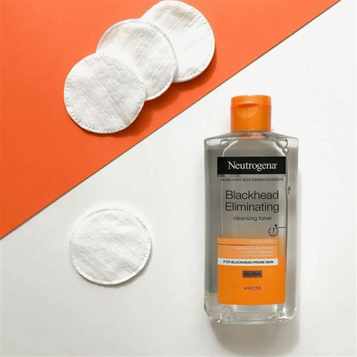 تونر ضدجوش سرسیاه نوتروژینا(پوست چرب) Neutrogena Blackhead Eliminating به کمک این تونر میتوانید منافذ پوست رو به صورت عمقی تمیز کنید و از شر جوشهای سرسیاه خلاص شوید. تونر ضدجوش نوتروژینا از ترکیبات قدرتمندی ساخته شده است که ترشح چربی پوست را کنترل میکند و آلودگی و ناخالصیهای سطح پوست را پاک میکند.در فرمولاسیون تونر ضد جوش سر سیاه نوتروژینا از آب (آب تصفیه شده و ویژه) ، سیتریک اسید طبیعی و ترکیبی استخراج شده از برنج به نام پانتنول و همچین اسیدسالیسیلیک استفاده شده است. تونرهایی که بر پایهی آب تولید میشوند این خاصیت را دارند که با تمامی انواع پوست سازگار بوده و برای آنها مناسب باشند. متعادل کردن سطح اسیدی و بازی پوست از ایجاد جوشهای سر سیاه جلوگیری میکند. به دلیل فرمولاسیون مناسب این محصول، تمامی افراد با انواع پوست میتوانند از این تونر استفاده کرده و از نتایج مثبت آن بهره مند شوند.